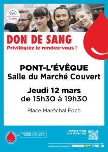 Retrouvez-nous à PONT-L’ÉVÊQUE le Jeudi 12 Mars de 15h30 à 19h30 à la Salle du Marché Couvert.